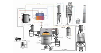 4.熱風(fēng)爐產(chǎn)生的煙氣(或生產(chǎn)廢熱煙氣)經(jīng)調(diào)溫后進(jìn)入轉(zhuǎn)子干化器,對污泥進(jìn)行加熱干化。